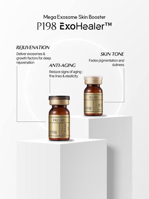 Exohealer is the best exosome for hair loss and face skin. Filcore P198 features 49.2 billion particle encapsulations, 1,470 growth factors and cell activators, and 6 exosome-boosting growth factors for superior skin regeneration. With 59 active ingredients, it enhances cell activity, antioxidant protection, protein synthesis, and deep hydration. Designed for optimal skin absorption, it works synergistically with Exohealer and a dedicated booster for maximum effectiveness.